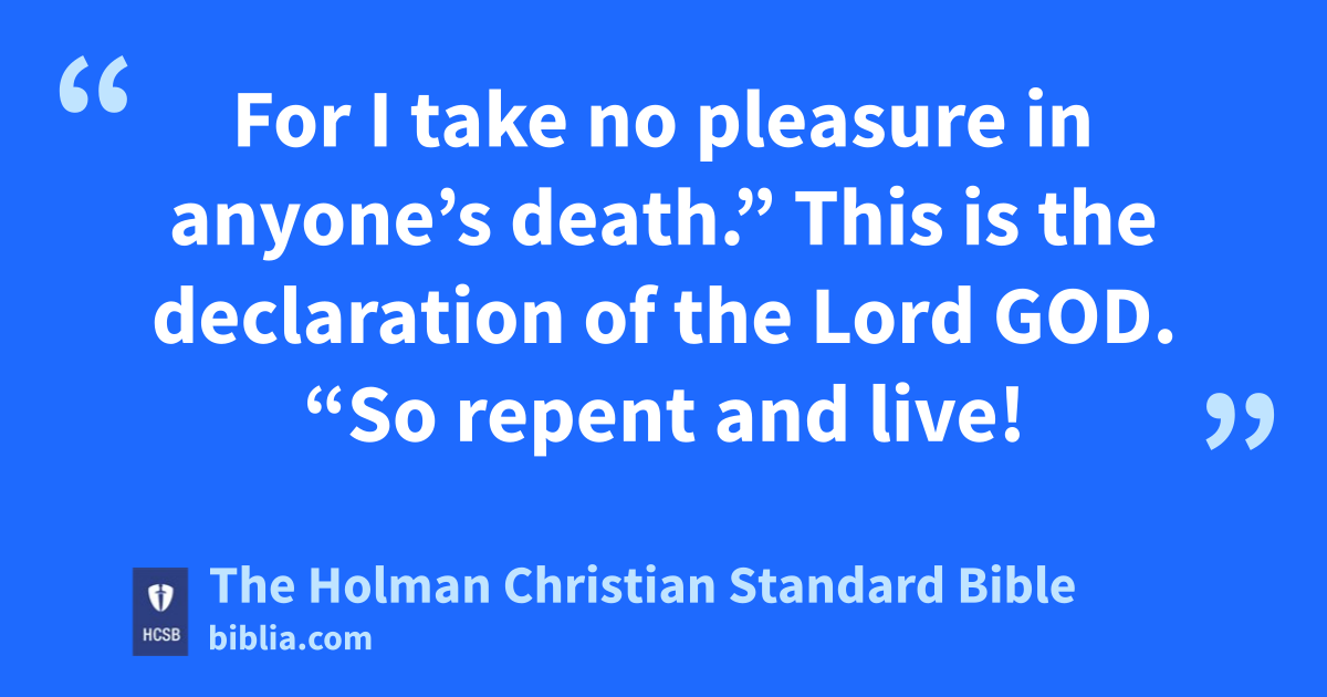 30 “Therefore, house of Israel, I will judge each one of you according to his ways.” k This is the declaration of the Lord God. “Repent and turn from all your transgressions, so they will not be a stumbling block that causes your punishment. 31 Throw off all the transgressions you have committed, and get yourselves a new heart and a new spirit. l Why should you die, house of Israel? 32 For I take no pleasure in anyone’s death.” This is the declaration of the Lord God. “So repent and live!