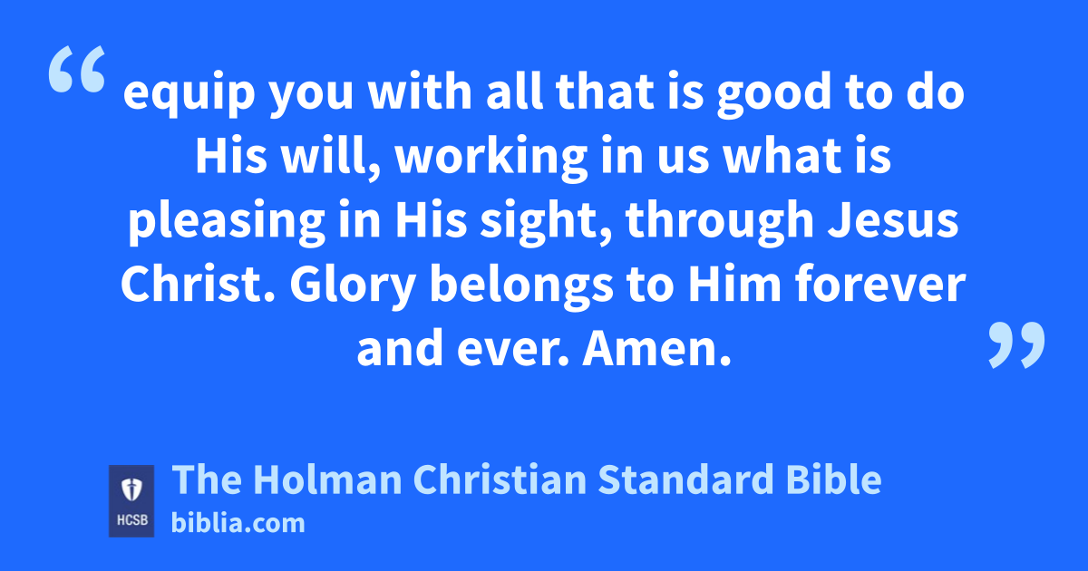 20 Now may the God of peace, who brought up from the dead our Lord Jesus—the great Shepherd of the sheep g—with the blood of the everlasting covenant, h 21 equip i you with all that is good to do His will, working in us what is pleasing in His sight, through Jesus Christ. Glory belongs to Him forever and ever. j k * Amen.