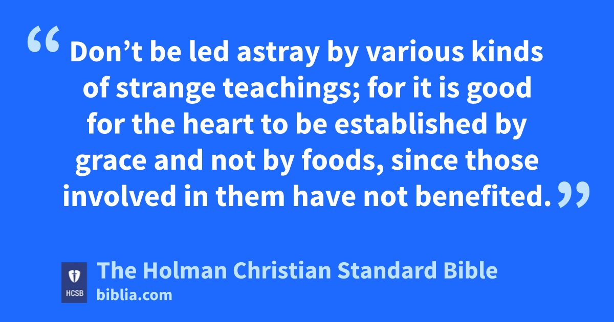 7 Remember your leaders who have spoken God’s word to you. As you carefully observe the outcome of their lives, imitate their faith. q 8 Jesus Christ is the same yesterday, today, and forever. r 9 Don’t be led astray by various kinds of strange teachings; for it is good for the heart to be established by grace and not by foods, since those involved in them have not benefited. s 10 We have an altar from which those who serve the tabernacle do not have a right to eat. t 11 For the bodies of those animals whose blood is brought into the most holy place by the high priest u as a sin offering are burned outside the camp. v 12 Therefore Jesus also suffered outside the gate, w so that He might * sanctify x the people by His own blood. 13 Let us then go to Him outside the camp, bearing His disgrace. y 14 For we do not have an enduring city here; instead, we seek the one to come. z 15 Therefore, through Him let us continually offer up to God a sacrifice of praise, that is, the fruit of our lips that confess His name. a 16 Don’t neglect to do what is good and to share, for God is pleased with such sacrifices. b 17 Obey your leaders c and submit to them, for they keep watch d over your souls as those who will give an account, so that they can do this with joy and not with grief, for that would be unprofitable for you. 18 Pray for us; for we are convinced that we have a clear conscience, wanting to conduct ourselves honorably in everything. e 19 And I especially urge you to pray f that I may be restored to you very soon.