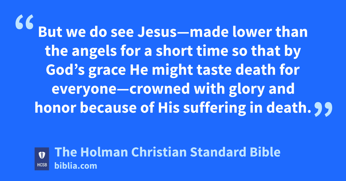 For in subjecting everything to him, He left nothing that is not subject to him. As it is, we do not yet see everything subjected to him. y 9 But we do see Jesus—made lower than the angels for a short time so that by God’s grace He might taste death z for everyone—crowned with glory and honor a because of His suffering in death. b