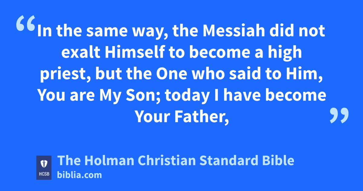 5 For every high priest taken from men is appointed in service d to God for the people, to offer both gifts and sacrifices for sins. 2 He is able to deal gently with those who are ignorant and are going astray, since he is also subject to weakness. e 3 Because of this, he must make a sin offering for himself as well as for the people. f 4 No one takes this honor on himself; instead, a person is called by God, just as Aaron was. g 5 In the same way, the * Messiah did not exalt Himself to become a high priest, but the One who said to Him, You are My Son; today I have become Your Father, h i 6 also said in another passage, You are a priest forever in the order of Melchizedek. j k