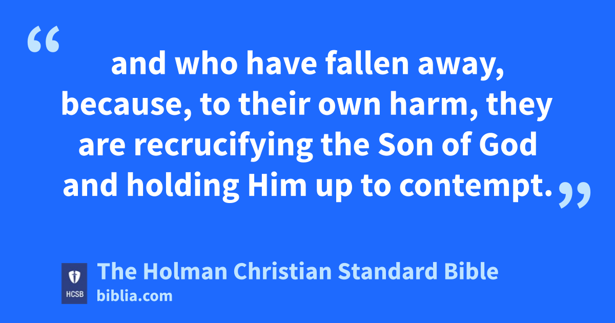 4 For it is impossible to renew to repentance those who were once enlightened, who tasted the heavenly gift, became companions with the Holy Spirit, u 5 tasted God’s good word and the powers of the coming age, 6 and who have fallen away, because, v to their own harm, they are recrucifying the Son of God and holding Him up to contempt. w 7 For ground that has drunk the rain that has often fallen on it and that produces vegetation useful to those it is cultivated for receives a blessing from God. 8 But if it produces thorns and thistles, it is worthless and about to be cursed, and will be burned at the end. x