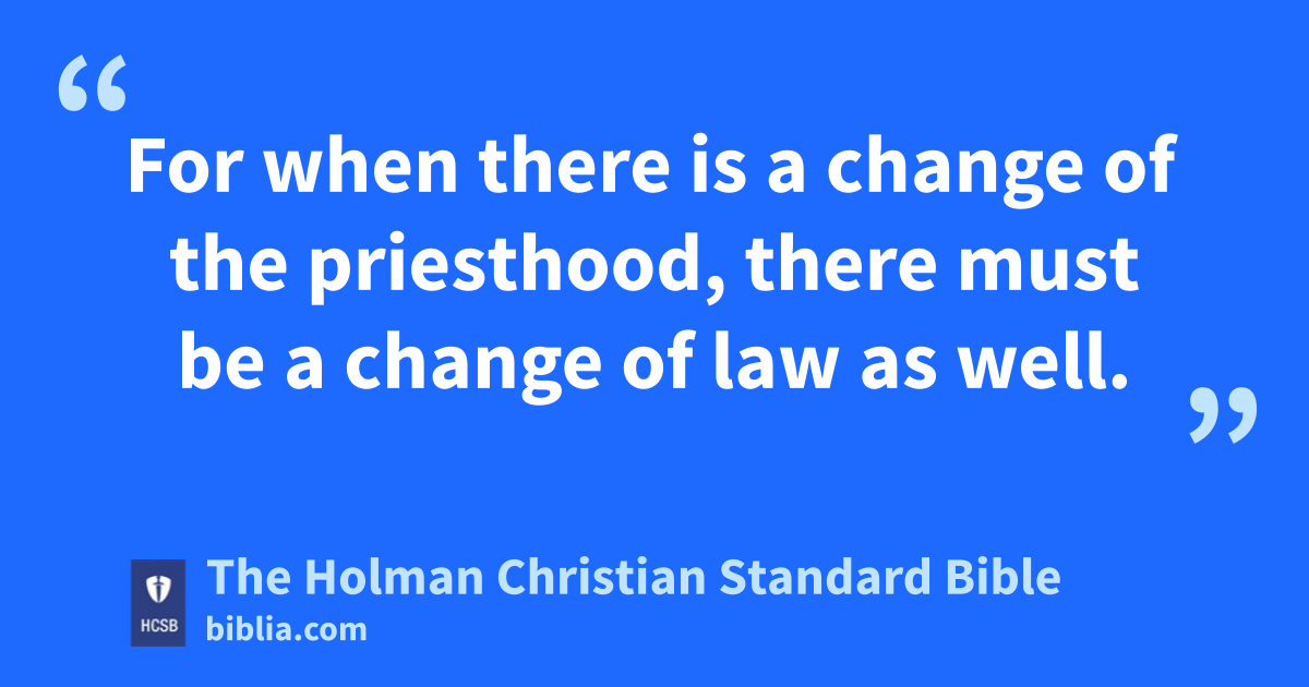 11 If then, perfection came through the Levitical priesthood (for under it the people received the law s), what further need was there for another priest to appear, said to be in the order of Melchizedek and not in the order of Aaron? t 12 For when there is a change of the priesthood, there must be a change of law as well. 13 For the One these things are spoken about belonged to a different tribe. No one from it has served at the altar. 14 Now it is evident that our Lord came from Judah, u and Moses said nothing about that tribe concerning priests.