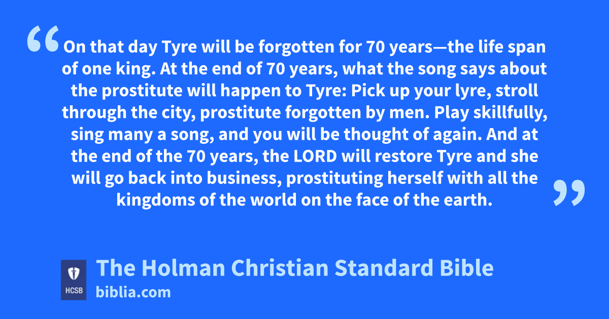 15 On that day Tyre will be forgotten for 70 years—the life span of one king. At the end of 70 years, what the song says about the prostitute will happen to Tyre: