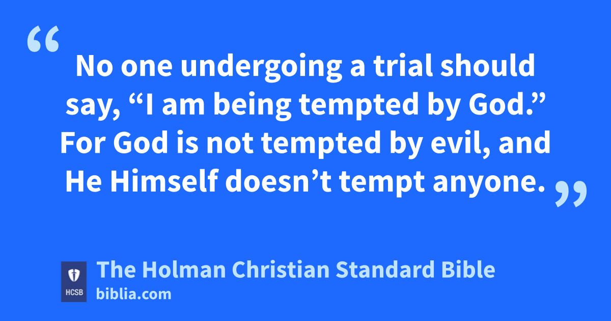 13 No one undergoing a trial should say, “I am being tempted by God.” For God is not tempted by evil, q and He Himself doesn’t tempt anyone. 14 But each person is tempted when he is drawn away and enticed by his own evil desires. r 15 Then after desire has conceived, it gives birth to sin, and when sin is fully grown, it gives birth to death. s