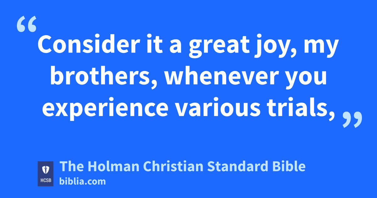 2 Consider it a great joy, my * brothers, whenever you experience various trials, g 3 knowing that the testing of your faith produces endurance. 4 But endurance must do its complete work, so that you may be mature and complete, lacking nothing.