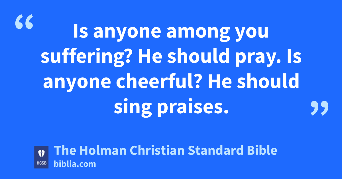 13 Is anyone among you suffering? He should pray. Is anyone cheerful? He should sing praises. n 14 Is anyone among you sick? He should call for the elders of the church, and they should pray over him after anointing him with olive oil in the name of the Lord. o 15 The prayer of faith will save the sick person, and the Lord will restore him to health; if he has committed sins, he will be forgiven. p 16 Therefore, confess your sins to one another and pray for one another, so that you may be healed. The urgent request of a righteous person is very powerful in its effect. q 17 Elijah was a man with a nature like ours; yet he prayed earnestly that it would not rain, and for three years and six months it did not rain on the land. r 18 Then he prayed again, and the sky gave rain and the land produced its fruit. s