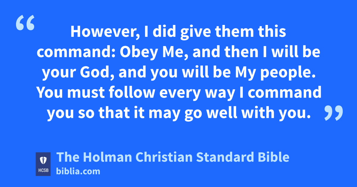 21 This is what the Lord of Hosts, the God of Israel, says: “Add your * burnt offerings to your other sacrifices, and eat the meat yourselves, k 22 for when I brought your ancestors out of the land of Egypt, I did not speak with them l or command them concerning burnt offering and sacrifice. 23 However, I did give them this command: Obey Me, and then I will be your God, and you will be My people. You must follow every way I command you so that it may go well with you. m 24 Yet they didn’t listen or pay attention n but followed their own advice and according to their own stubborn, evil heart. They went backward and not forward. o 25 Since the day your ancestors came out of the land of Egypt until this day, I have sent all My servants the prophets p to you time and time again. q r 26 However, they wouldn’t listen to Me or pay attention but became obstinate; s t they did more evil than their ancestors. u