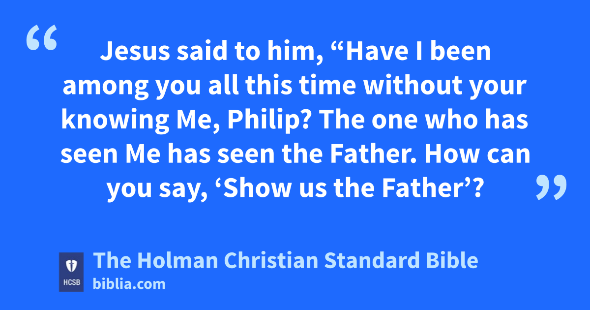 9 Jesus said to him, “Have I been among you all this time without your knowing Me, Philip? The one who has seen Me has seen the Father. f How can you say, ‘Show us the Father’? 10 Don’t you believe that I am in the Father and the Father is in Me? g The words I speak to you I do not speak on My own. h The Father who lives in Me does His works. i 11 Believe Me that I am in the Father and the Father is in Me. Otherwise, believe j because of the works themselves. k