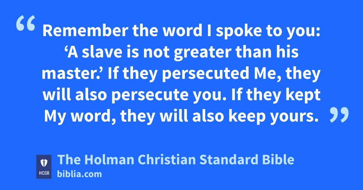 18 “If the * world hates v you, understand that it hated Me before it hated you. 19 If you were of the world, the world would love you as its own. However, because you are not of the world, but I have chosen w you out of it, the world hates you. 20 Remember the word I spoke to you: ‘A slave is not greater than his master.’ x If they persecuted Me, they will also persecute you. If they kept My word, y they will also keep yours. 21 But they will do all these things to you on account of My name, z because they don’t know a the One who sent Me. 22 If I had not come and spoken to them, they would not have sin. b c Now they have no excuse for their sin. 23 The one who hates Me also hates My Father. d 24 If I had not done the works e among them that no one else has done, f they would not have sin. g Now they have seen and hated both Me and My Father. 25 But this happened so that the statement written in their scripture might be fulfilled: h They hated Me for no reason. i j