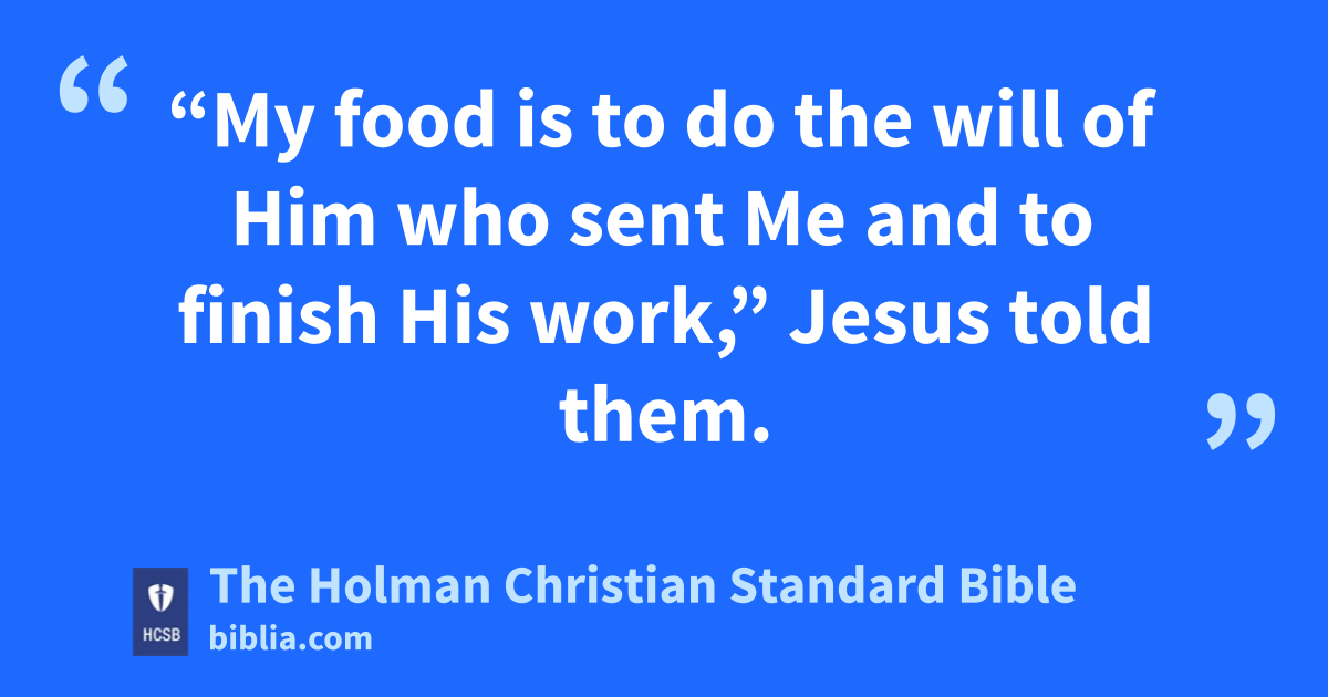 34 “My food is to do the will of Him g who sent Me h and to finish His work,” i Jesus told them. 35 “Don’t you say, ‘There are still four more months, then comes the harvest’? Listen to what I’m telling you: Open j your eyes and look at the fields, for they are ready k for harvest. 36 The reaper is already receiving pay and gathering fruit for eternal life, l so the sower and reaper can rejoice together. 37 For in this case the saying is true: ‘One sows and another reaps.’ m 38 I sent you to reap what you didn’t labor for; others have labored, and you have benefited from n their labor.”