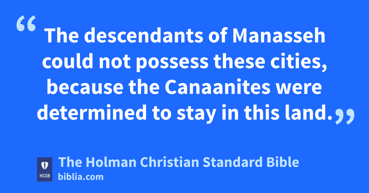 12 The descendants of Manasseh could not possess these cities, because the Canaanites were determined to stay in this land. 13 However, when the Israelites grew stronger, they imposed forced labor on the Canaanites but did not drive them out completely. g