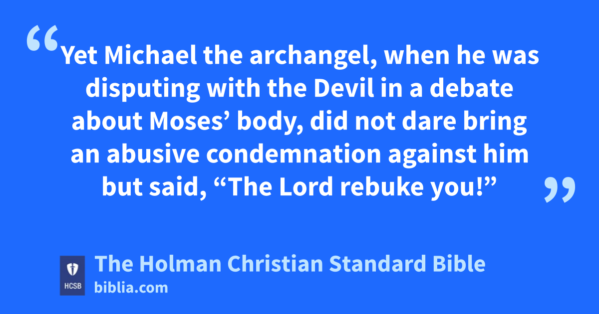 8 Nevertheless, these dreamers likewise defile their flesh, reject authority, and blaspheme glorious ones. u 9 Yet Michael v the archangel, w when he was disputing with the Devil x in a debate about Moses’ y body, did not dare bring an abusive condemnation against him but said, “The Lord rebuke you!” 10 But these people blaspheme anything they don’t understand. What they know by instinct like unreasoning animals—they destroy themselves with these things. 11 Woe to them! For they have traveled in the way of Cain, z have abandoned themselves to the error of Balaam a for profit, and have perished in Korah’s rebellion. b