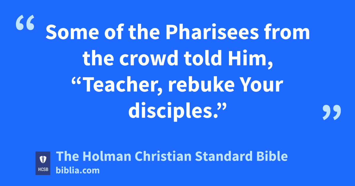 39 Some of the * Pharisees from the crowd told Him, “Teacher, rebuke Your disciples.”