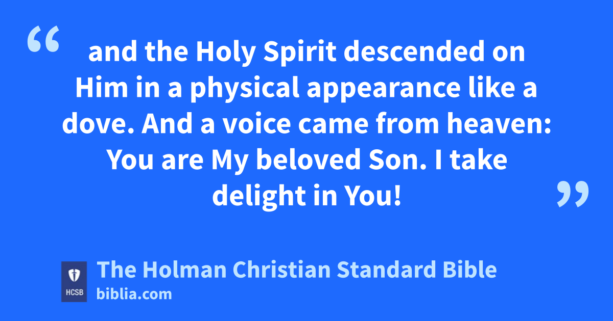 21 When all the people were baptized, j Jesus also was baptized. As He was praying, k heaven opened, l 22 and the Holy Spirit descended on Him in a physical appearance like a dove. And a voice came from heaven: