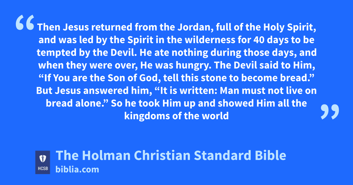 4 Then Jesus a returned from the Jordan, b full of the Holy Spirit, c and was led by the Spirit d in the wilderness 2 for 40 days e to be tempted by the Devil. He ate nothing during those days, and when they were over, f He was hungry. 3 The Devil said to Him, “If You are the Son of God, tell this stone to become bread.”