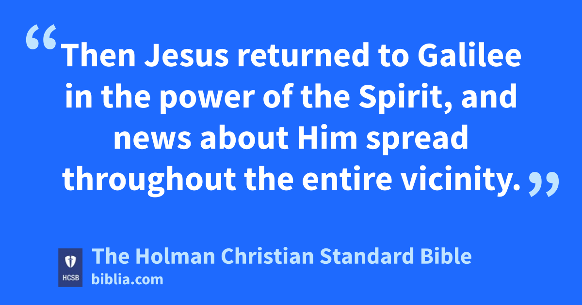 14 Then Jesus returned to Galilee in the power of the Spirit, w and news about Him spread throughout the entire vicinity. x 15 He was teaching in their * synagogues, y being acclaimed z by everyone.