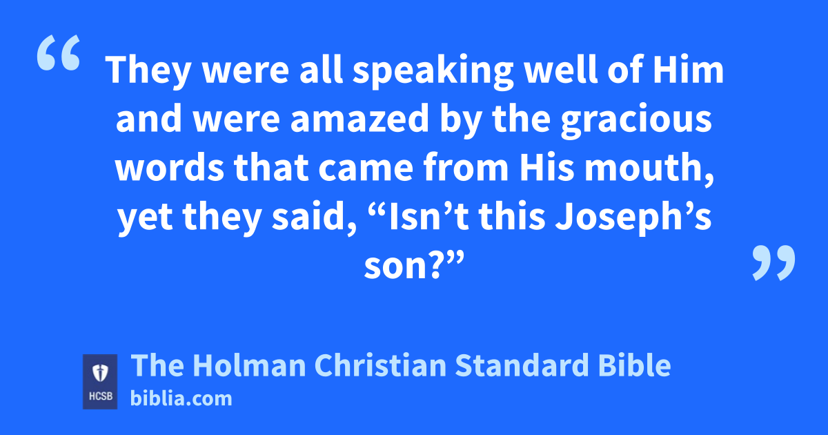 22 They were all speaking well of Him k and were amazed by the gracious words that came from His mouth, yet they said, “Isn’t this Joseph’s son?” l