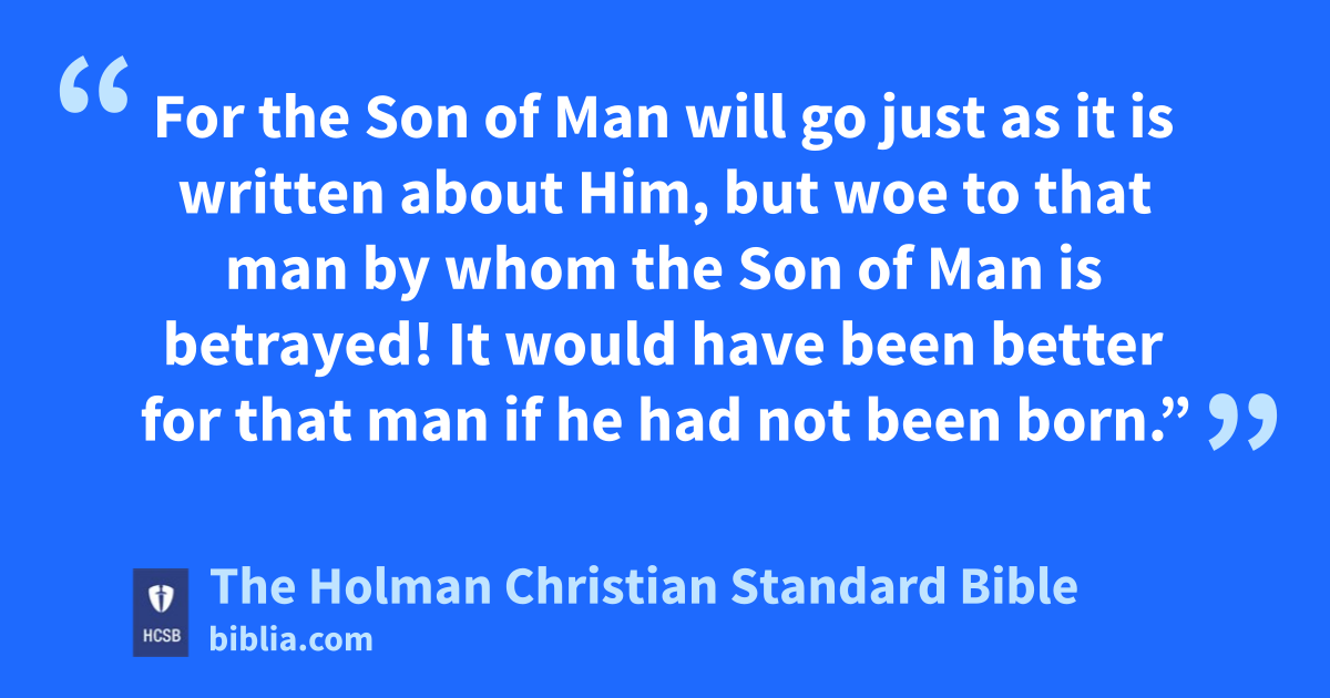 20 He said to them, “It is one of the Twelve—the one who is dipping bread with Me in the bowl. 21 For the * Son of Man q will go just as it is written r about Him, s but woe t to that man by whom the Son of Man is betrayed! It would have been better for that man if he had not been born.”