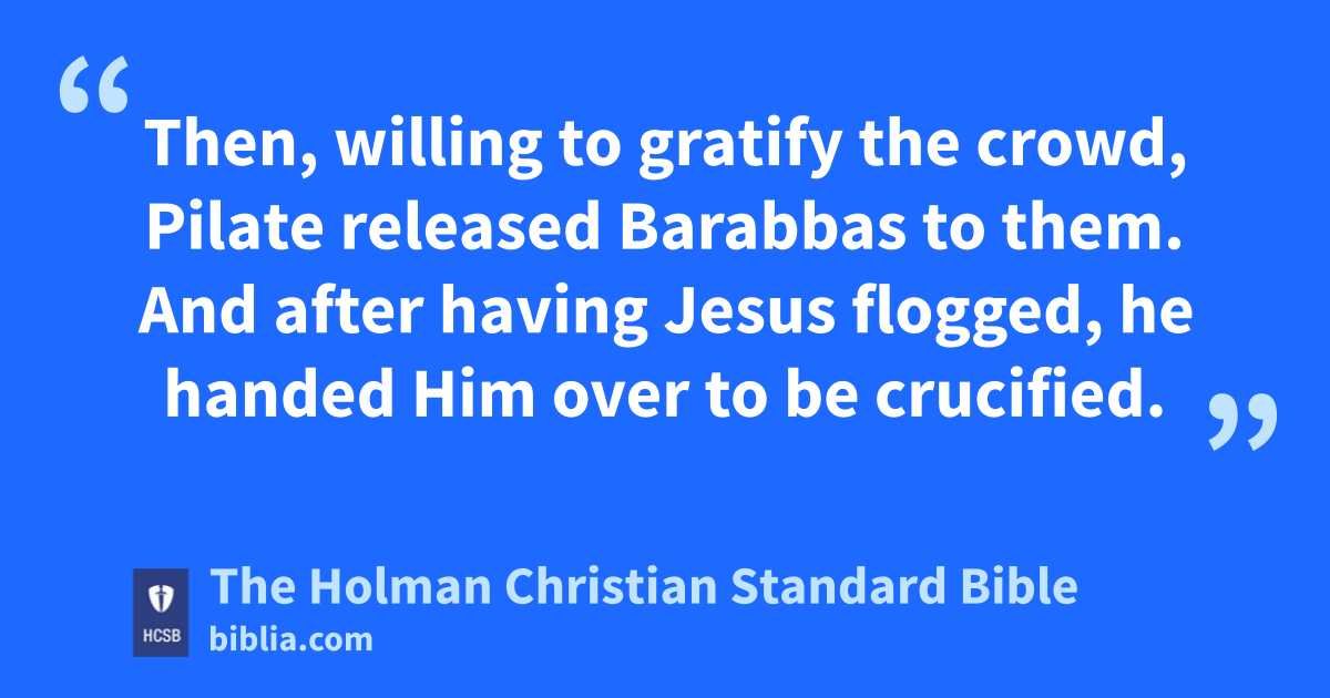 15 Then, willing to gratify the crowd, Pilate released Barabbas to them. And after having Jesus flogged, p he handed Him over to be crucified.