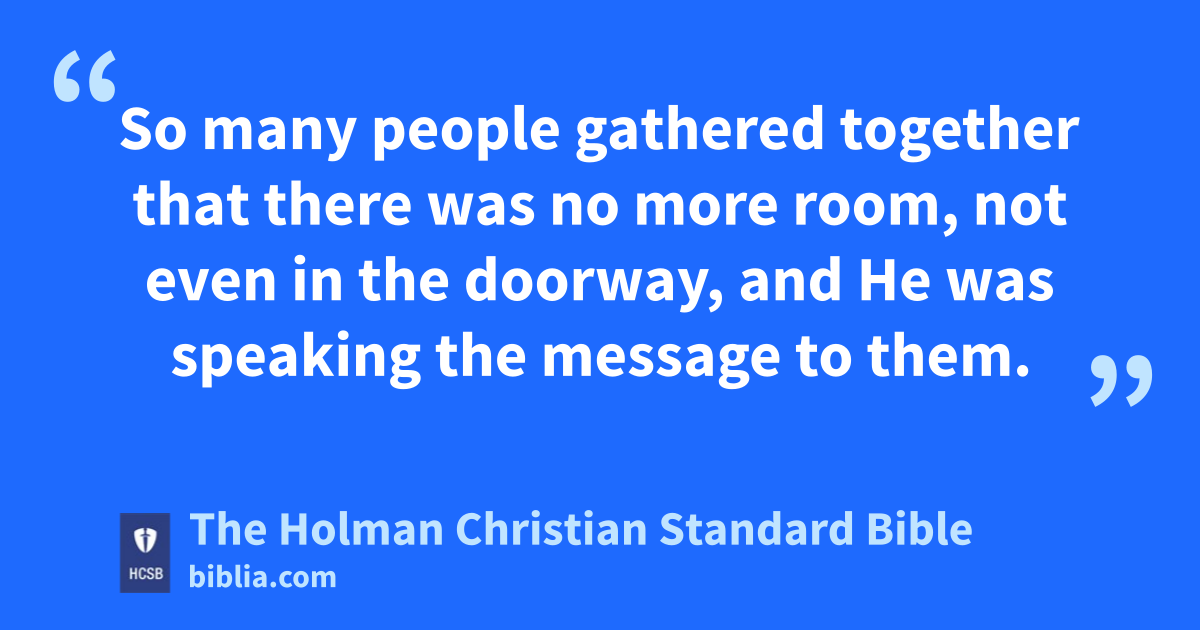 2 When z He entered Capernaum a again after some days, it was reported that He was at home. 2 So many people gathered together that there was no more room, not even in the doorway, and He was speaking the message b to them. 3 Then they came to Him bringing a paralytic, c carried by four men. 4 Since they were not able to bring him to d Jesus because of the crowd, they removed the roof above where He was. And when they had broken through, they lowered the mat on which the paralytic was lying.