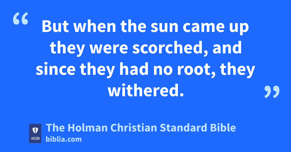 3 Then He told them many things in parables, l saying: “Consider the sower who went out to sow. 4 As he was sowing, some seed fell along the path, and the birds came and ate them up. 5 Others fell on rocky ground, where there wasn’t much soil, and they sprang up quickly since the soil wasn’t deep. 6 But when the sun came up they were scorched, and since they had no root, they withered. 7 Others fell among thorns, and the thorns came up and choked them. 8 Still others fell on good ground and produced a crop: some 100, some 60, and some 30 times what was sown. m 9 Anyone who has ears n should listen!” o
