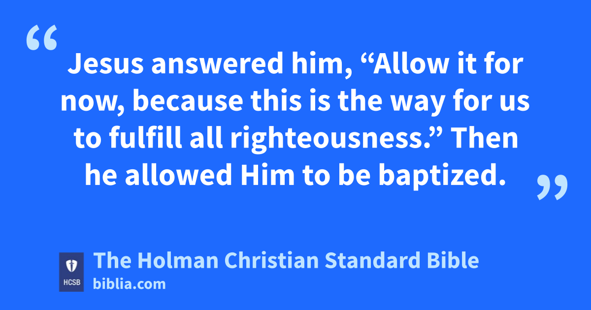 15 Jesus answered him, “Allow it for now, because this is the way for us to fulfill all righteousness.” Then he allowed Him to be baptized.