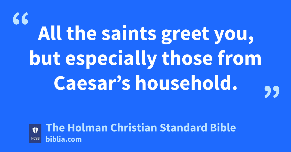21 Greet every * saint in Christ Jesus. Those brothers who are with me greet you. 22 All the saints greet you, but especially those from Caesar’s t household. u 23 The grace of the Lord Jesus Christ be with your spirit. v w