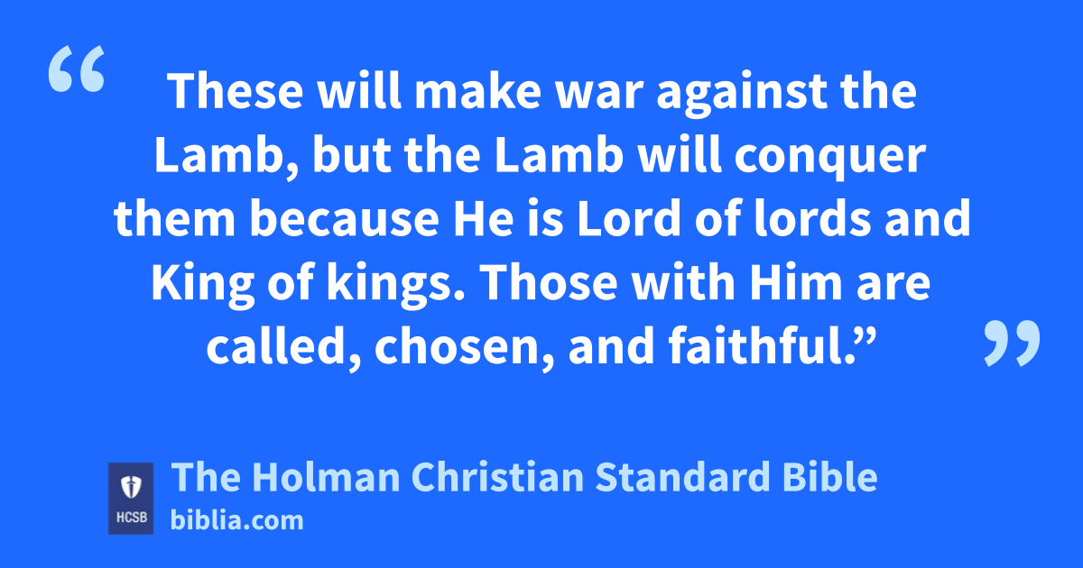 9 “Here is the mind with wisdom: w x The seven heads are seven mountains on which the woman is seated. 10 They are also seven kings: y Five have fallen, one is, the other has not yet come, and when he comes, he must remain for a little while. 11 The beast that was and is not, is himself an eighth king, yet he belongs to the seven and is going to destruction. 12 The 10 horns you saw are 10 kings z who have not yet received a kingdom, but they will receive authority as kings with the beast for one hour. a 13 These have one purpose, and they give their power and authority to the beast. 14 These will make war against the Lamb, but the Lamb will conquer them because He is Lord of lords and King of kings. b Those with Him are called, chosen, and faithful.” c