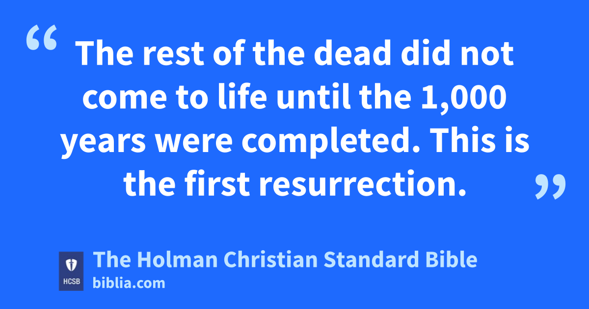 4 Then I saw thrones, and people seated on them who were given authority to judge. m I also saw the people n o who had been beheaded p because of their testimony about Jesus q and because of God’s word, who had not worshiped the beast or his image, and who had not accepted the mark on their foreheads or their hands. r They came to life s and reigned with the * Messiah for 1,000 years. t 5 The rest of the dead did not come to life until the 1,000 years were completed. This is the first resurrection. 6 Blessed u and holy is the one who shares in the first resurrection! The second death v has no power w over them, but they will be priests of God and of the Messiah, and they will reign with Him for 1,000 years. x