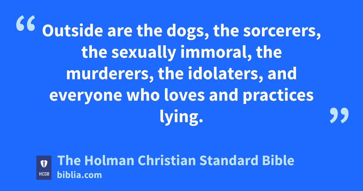14 “Blessed p are those who wash their robes, q so that they may have the right to the tree of life and may enter the city by the gates. 15 Outside are the dogs, r the sorcerers, the sexually immoral, the murderers, the idolaters, and everyone who loves and practices lying. s