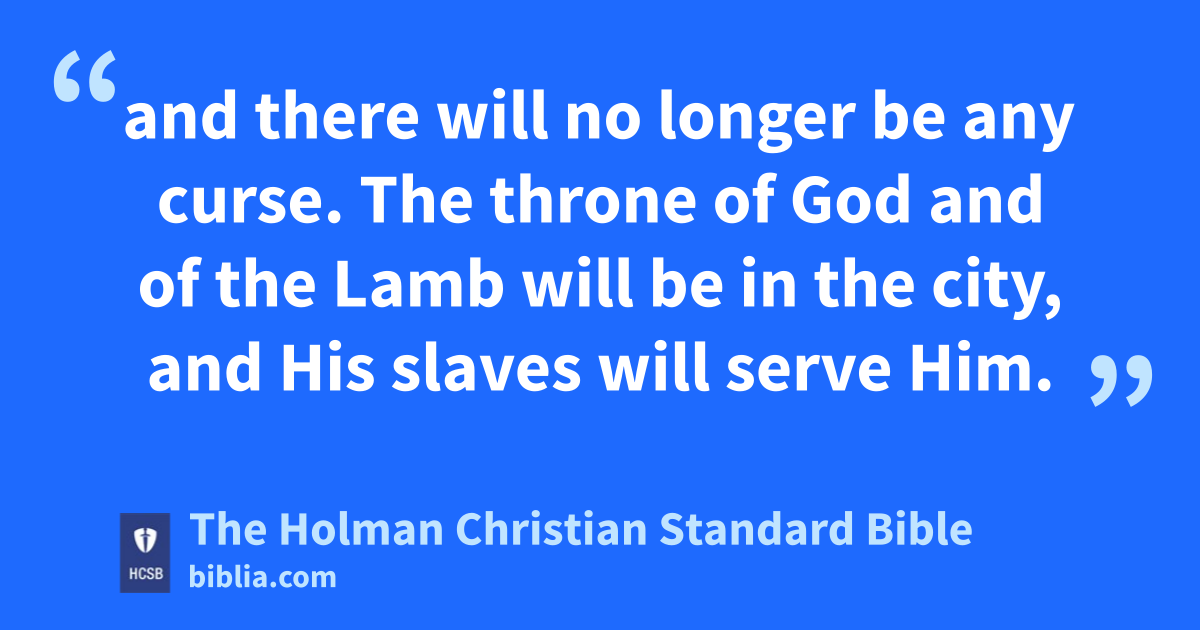 22 Then he showed me the river o of living water, p sparkling like crystal, q flowing from the throne of God and of the Lamb r 2 down the middle of the broad street of the city. The tree of life s was on both sides of the river, bearing 12 kinds of fruit, producing its fruit every month. t The leaves of the tree are for healing the nations, u 3 and there will no longer be any curse. v The throne of God and of the Lamb will be in the city, w and His * slaves will serve Him. 4 They will see His face, x and His name will be on their foreheads. y 5 Night will no longer exist, z and people will not need lamplight or sunlight, because the Lord God will give them light. a And they will reign forever and ever.
