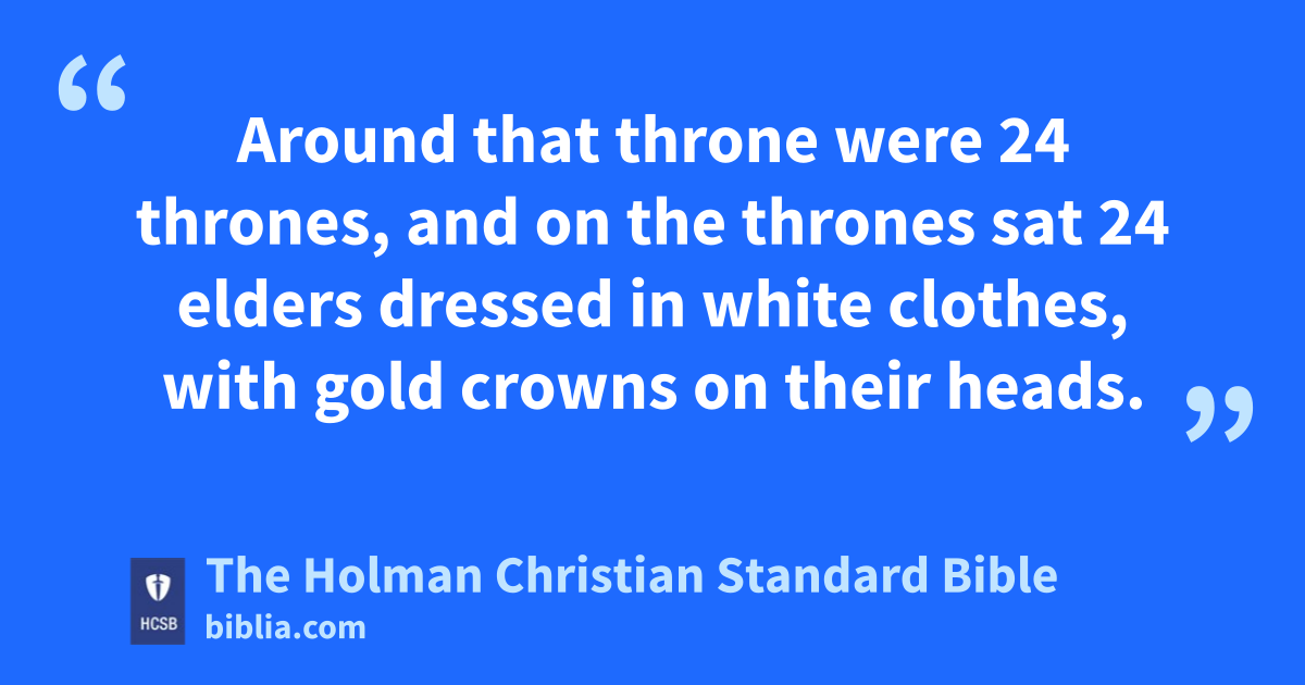 9 Whenever the living creatures give glory, honor, and thanks to the One seated on the throne, the One who lives forever and ever, a 10 the 24 elders fall down before the One seated on the throne, b worship the One who lives forever and ever, cast their crowns before the throne, and say: