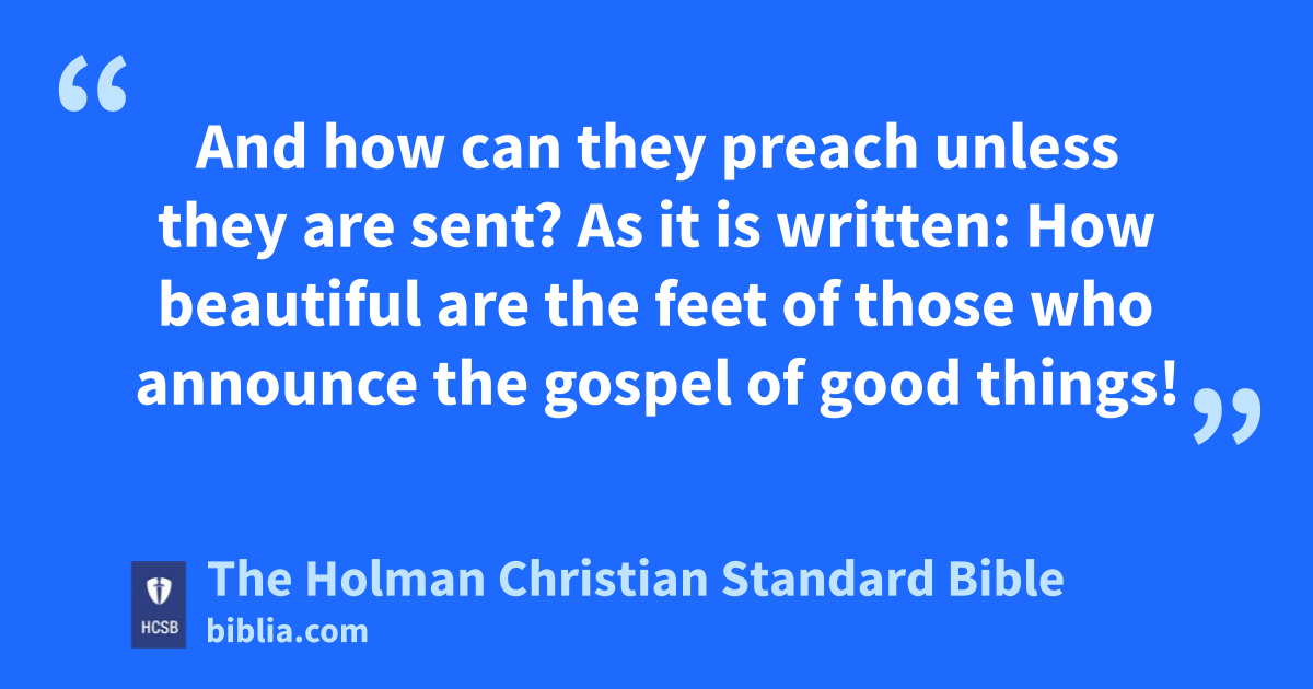 14 But how can they call on Him they have not believed in? And how can they believe without hearing about Him? t And how can they hear without a preacher? u 15 And how can they preach unless they are sent? As it is written: How beautiful v are the feet of those w who announce the gospel of good things! x y 16 But all did not obey the gospel. z For Isaiah says, Lord, who has believed our message? a b 17 So faith comes from what is heard, c and what is heard comes through the message about Christ. d e 18 But I ask, “Did they not hear?” Yes, they did: