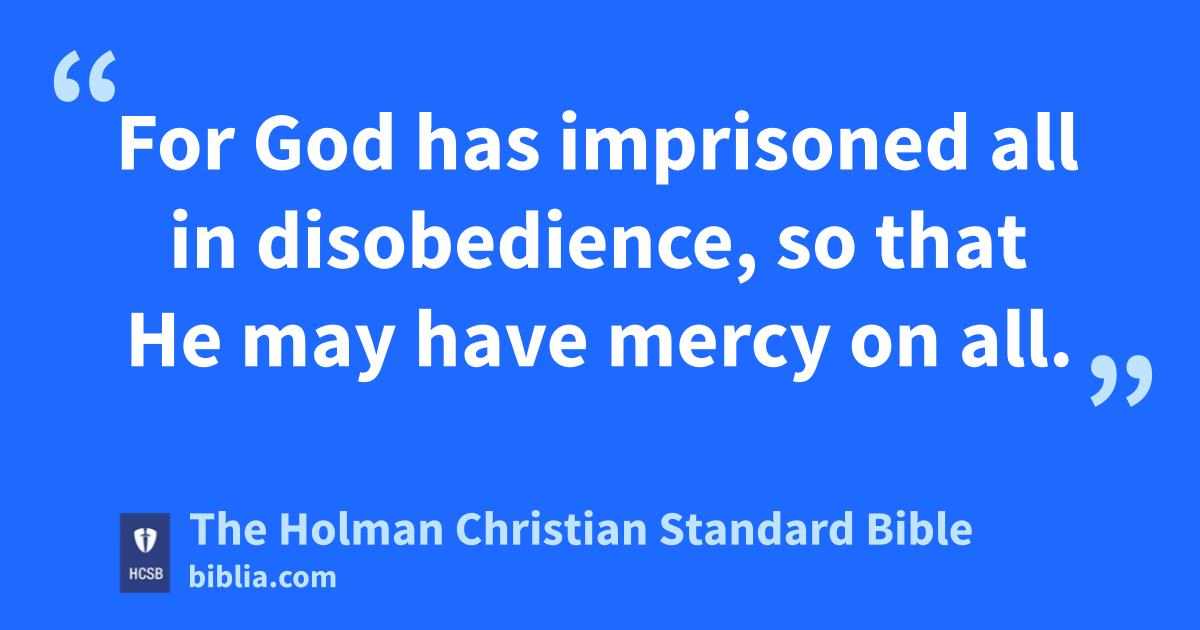 28 Regarding the gospel, they are enemies for your advantage, o but regarding election, they are loved because of the patriarchs, p 29 since God’s gracious gifts and calling q are irrevocable. r s 30 As you once disobeyed God, but now have received mercy through their disobedience, 31 so they too have now disobeyed, resulting in mercy to you, so that they also now t may receive mercy. 32 For God has imprisoned all in disobedience, u so that He may have mercy on all.