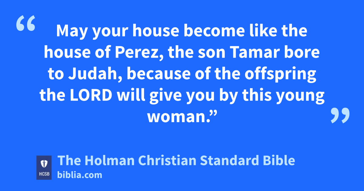 11 The elders and all the people who were at the gate said, “We are witnesses. May the Lord make the woman who is entering your house like Rachel and Leah, b who together built the house of Israel. May you be powerful in Ephrathah and famous in Bethlehem. 12 May your house become like the house of Perez, the son Tamar bore to Judah, c because of the offspring the Lord will give you by this young woman.”