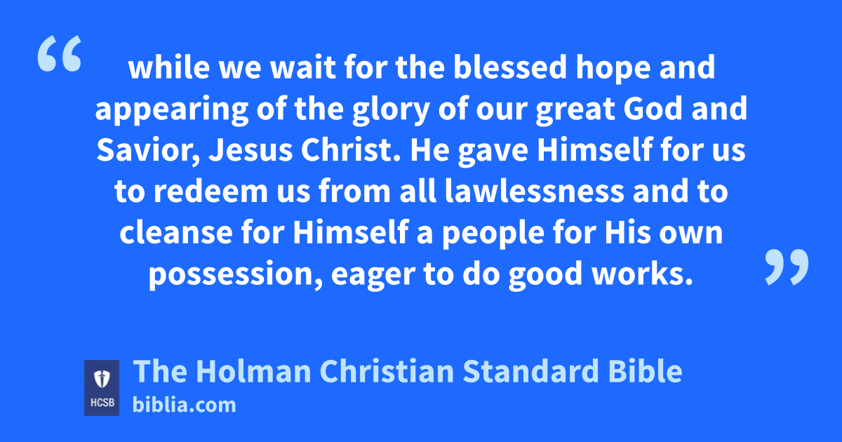 11 For the grace of God has appeared with salvation w for all people, x 12 instructing us to deny godlessness y and worldly lusts z and to live in a sensible, righteous, a and godly b way in the present age, 13 while we wait for the blessed hope c and appearing of the glory d of our great God and Savior, Jesus Christ. 14 He gave Himself for us e to * redeem us from all lawlessness and to cleanse for Himself a people for His own possession, f eager to do good works.