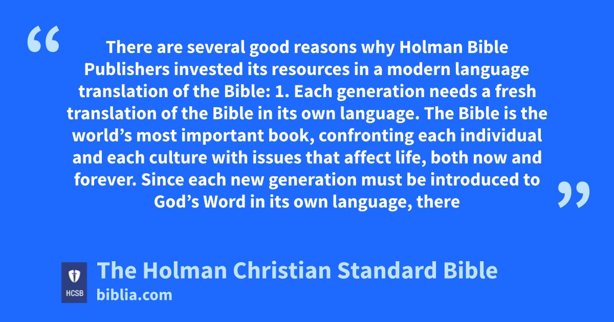 There are several good reasons why Holman Bible Publishers invested its resources in a modern language translation of the Bible: