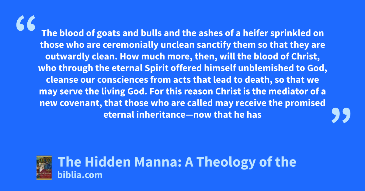 The blood of goats and bulls and the ashes of a heifer sprinkled on those who are ceremonially unclean sanctify them so that they are outwardly clean. How much more, then, will the blood of Christ, who through the eternal Spirit offered himself unblemished to God, cleanse our consciences from acts that lead to death, so that we may serve the living God. For this reason Christ is the mediator of a new covenant, that those who are called may receive the promised eternal inheritance—now that he has