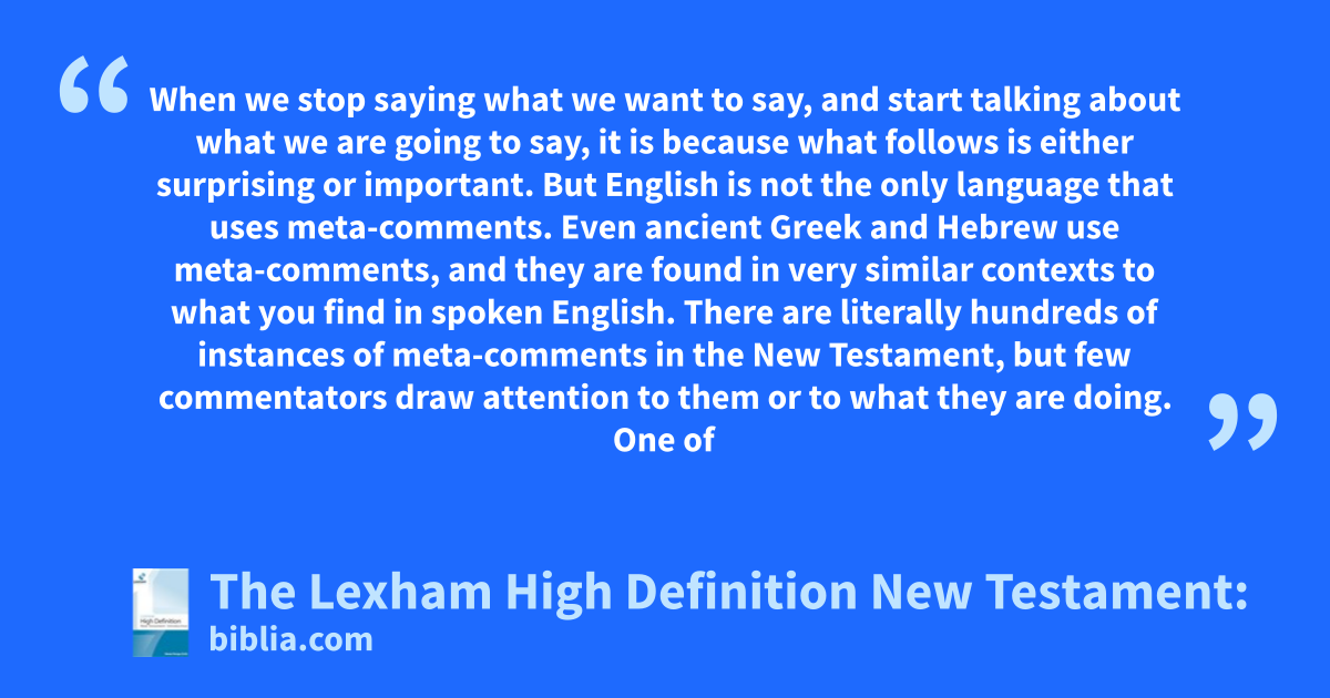 When we stop saying what we want to say, and start talking about what we are going to say, it is because what follows is either surprising or important. But English is not the only language that uses meta-comments. Even ancient Greek and Hebrew use meta-comments, and they are found in very similar contexts to what you find in spoken English. There are literally hundreds of instances of meta-comments in the New Testament, but few commentators draw attention to them or to what they are doing. One of