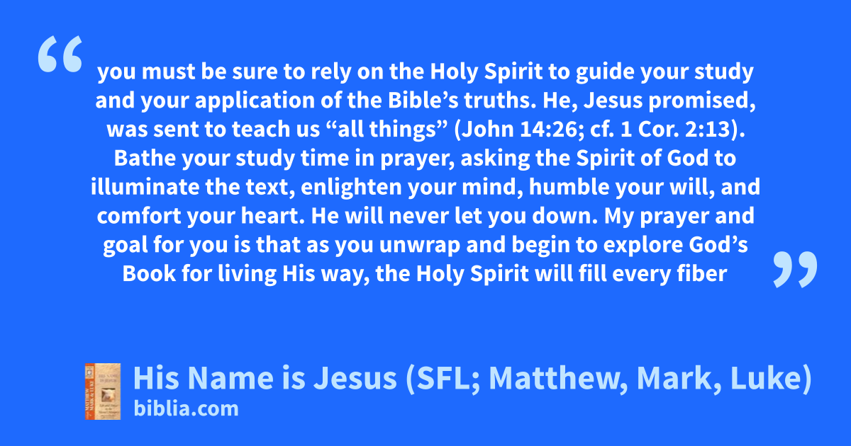 you must be sure to rely on the Holy Spirit to guide your study and your application of the Bible’s truths. He, Jesus promised, was sent to teach us “all things” (John 14:26; cf. 1 Cor. 2:13). Bathe your study time in prayer, asking the Spirit of God to illuminate the text, enlighten your mind, humble your will, and comfort your heart. He will never let you down. My prayer and goal for you is that as you unwrap and begin to explore God’s Book for living His way, the Holy Spirit will fill every fiber