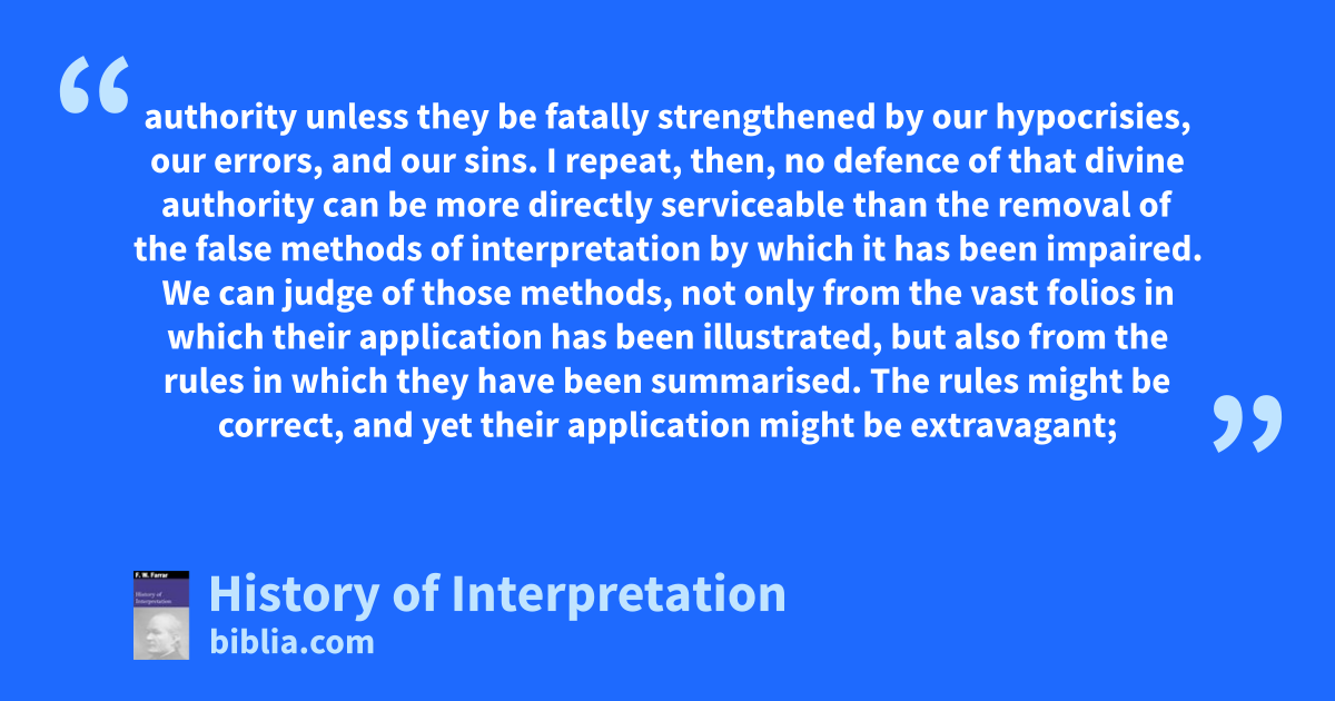 Originating as a series of lectures at the University of Oxford in 1885, this book by Bible scholar F. W. Farrar surveys the history of biblical interpretation from the early Jewish rabbis through his own time. Contents includes: Success and Failure of Exegesis, Rabbinic Exegesis, Alexandrian Exegesis, Patristic Exegesis, Scholastic Exegesis, The Reformers, Post-Reformation Epoch, and Modern...