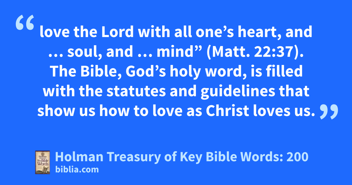 love the Lord with all one’s heart, and … soul, and … mind” (Matt. 22:37). The Bible, God’s holy word, is filled with the statutes and guidelines that show us how to love as Christ loves us.