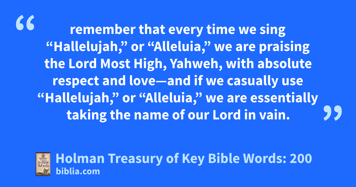 remember that every time we sing “Hallelujah,” or “Alleluia,” we are praising the Lord Most High, Yahweh, with absolute respect and love—and if we casually use “Hallelujah,” or “Alleluia,” we are essentially taking the name of our Lord in vain.