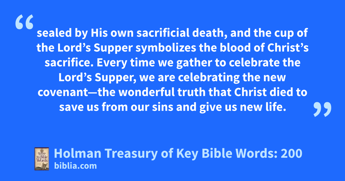 sealed by His own sacrificial death, and the cup of the Lord’s Supper symbolizes the blood of Christ’s sacrifice. Every time we gather to celebrate the Lord’s Supper, we are celebrating the new covenant—the wonderful truth that Christ died to save us from our sins and give us new life.