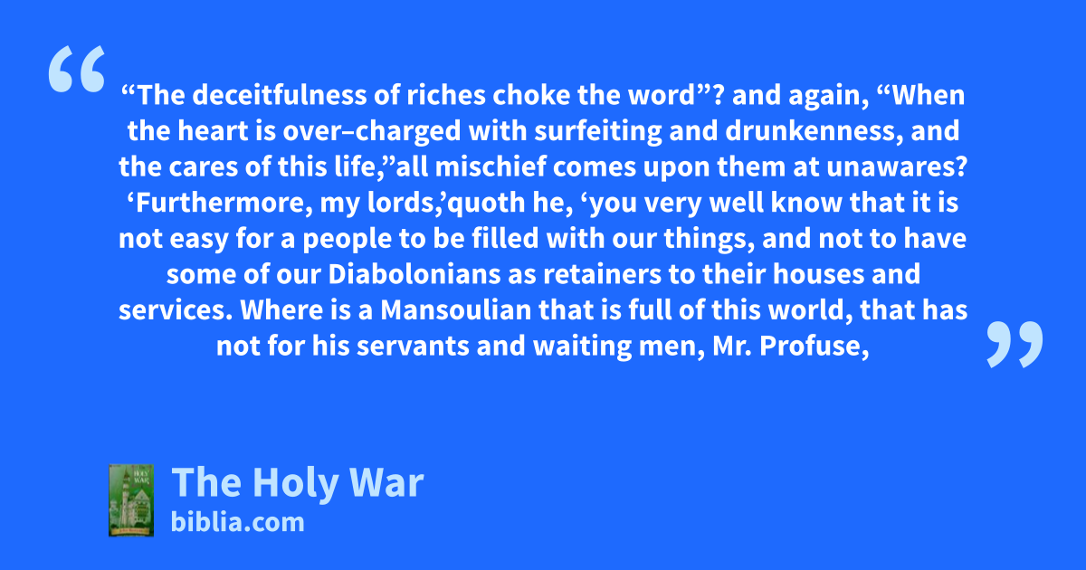 The battle rages for the town of Mansoul! But who will win the Holy War? Let John Bunyan take you to the continent of Universe as he weaves this exciting story of the struggle between good and evil-the battle for the capture of man's soul. This classic tale makes many spiritual truths come alive: the tactics Satan uses against us, the grace and mercy of God the father, the power and glory of...
