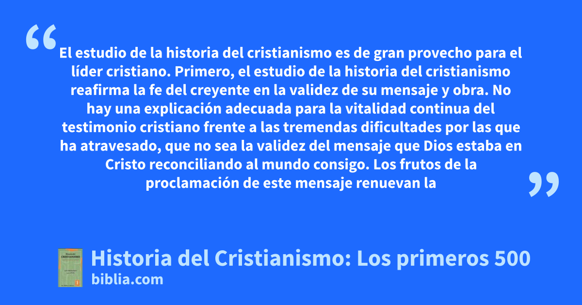 El estudio de la historia del cristianismo es de gran provecho para el líder cristiano. Primero, el estudio de la historia del cristianismo reafirma la fe del creyente en la validez de su mensaje y obra. No hay una explicación adecuada para la vitalidad continua del testimonio cristiano frente a las tremendas dificultades por las que ha atravesado, que no sea la validez del mensaje que Dios estaba en Cristo reconciliando al mundo consigo. Los frutos de la proclamación de este mensaje renuevan la