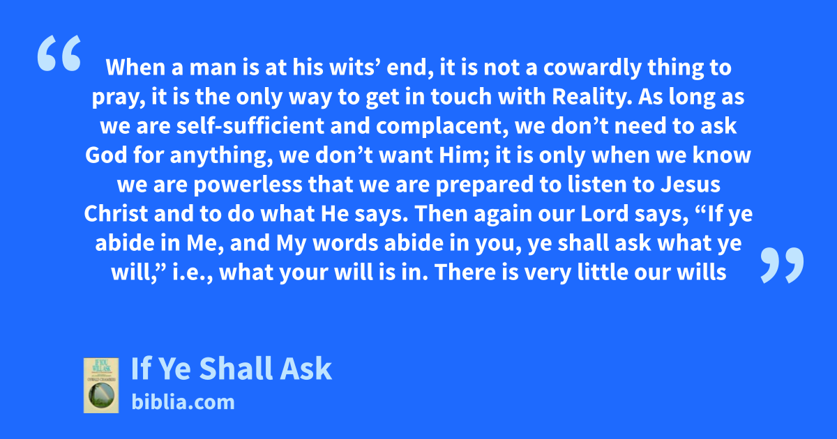 Chambers says the purpose of prayer is not to get healed, get a job, or get something else. It is to get "the life of God in us." Vitalize your prayer life by becoming attuned to God.