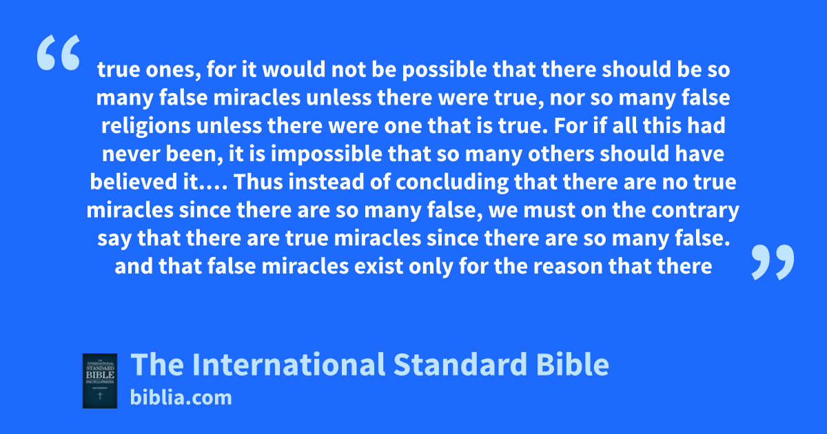 true ones, for it would not be possible that there should be so many false miracles unless there were true, nor so many false religions unless there were one that is true. For if all this had never been, it is impossible that so many others should have believed it.… Thus instead of concluding that there are no true miracles since there are so many false, we must on the contrary say that there are true miracles since there are so many false. and that false miracles exist only for the reason that there