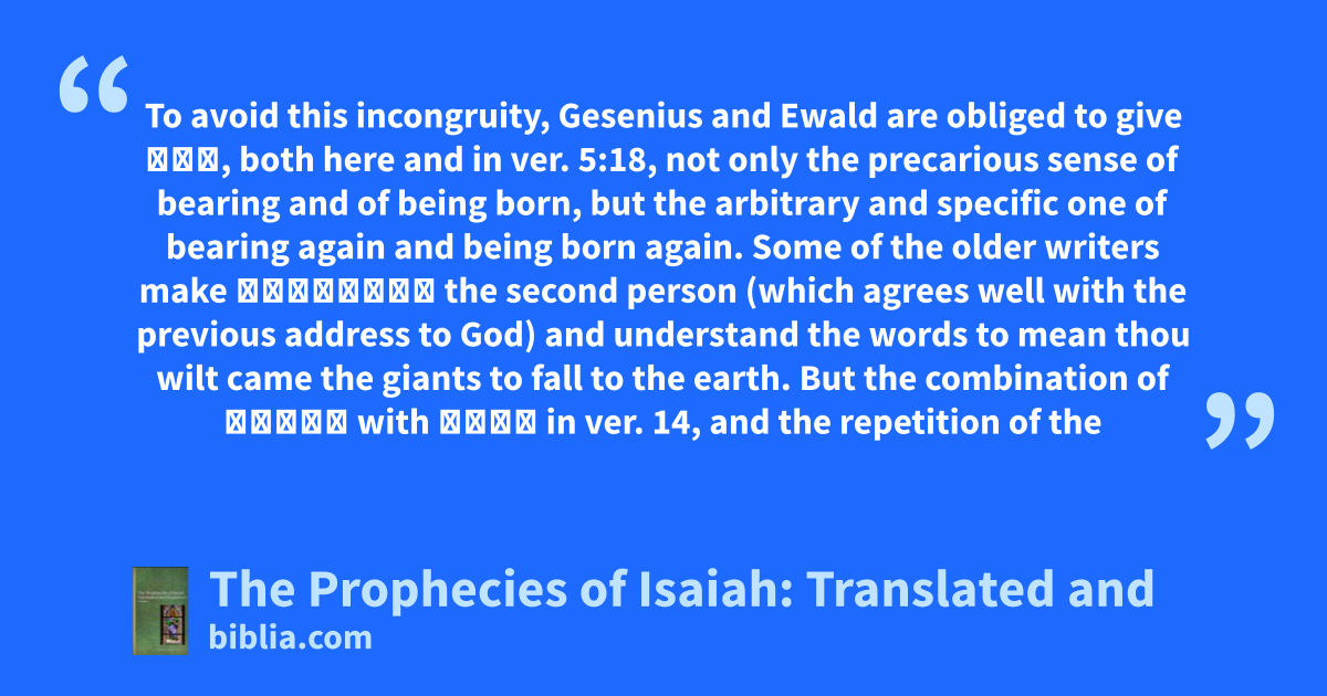 To avoid this incongruity, Gesenius and Ewald are obliged to give נפל, both here and in ver. 5:18, not only the precarious sense of bearing and of being born, but the arbitrary and specific one of bearing again and being born again. Some of the older writers make תַּפִּיל the second person (which agrees well with the previous address to God) and understand the words to mean thou wilt came the giants to fall to the earth. But the combination of דפאים with מתים in ver. 14, and the repetition of the